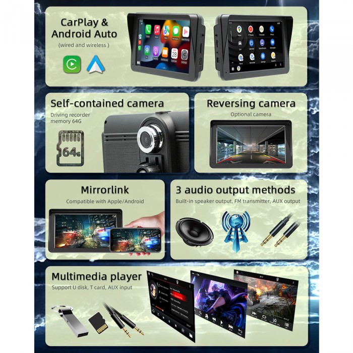 Свързва се безжично към вашия смартфон чрез Bluetooth, елиминирайки необходимостта от кабели или допълнителни адаптери. Освен това преносимият CarPlay / Android Auto дисплей може лесно да се монтира на таблото във всяка кола. Също така той разполага със система за захранване, която гарантира, че устройството остава заредено по време на употреба.