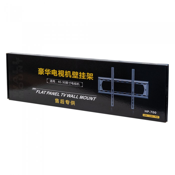 Фиксирана стойка за телевизор за монтаж на стена, подходяща за екрани до 75 инча. Компактна и здрава конструкция в черен цвят, осигуряваща лесен монтаж и стабилно закрепване.